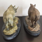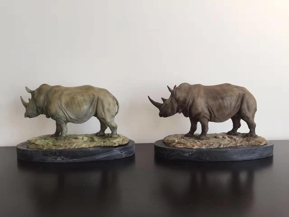 White Rhinoceros: (Ceratotherium simum) 1/15 scale, these are high quality prepainted figures produced in cooperation with the Memory Museum, choice of two styles, one lighter the other darker, please indicate which one when ordering, sets atop a heavy marbel style base with magnetic foot prints for display, also comes in a custom made box, limited few available. White Rhino cost $200.00 plus $40 for shipping and handling within the U.S. (Orders out side the U.S. contact for specific shipping quote before ordering.)